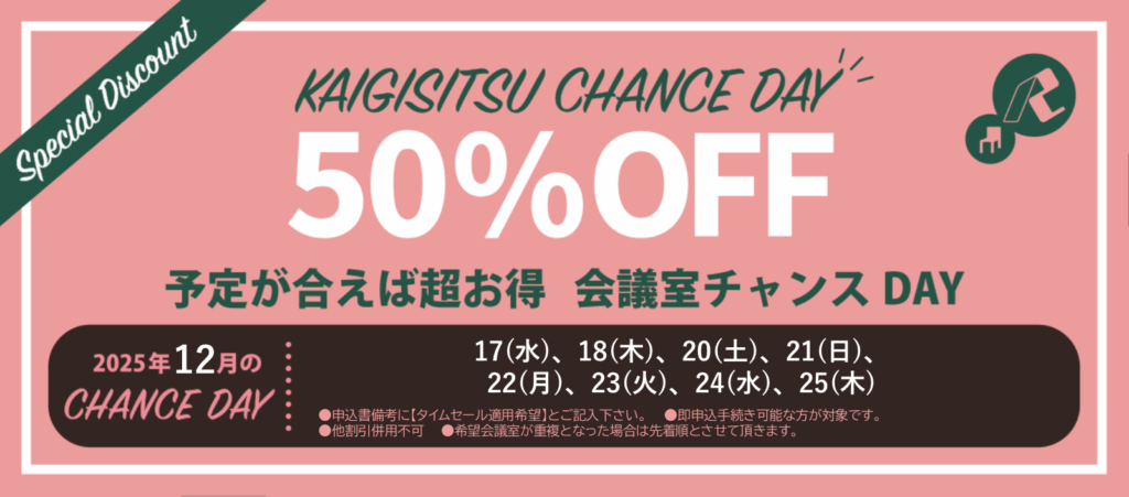 下記ご利用日は、超お得な会議室チャンスDAY!!