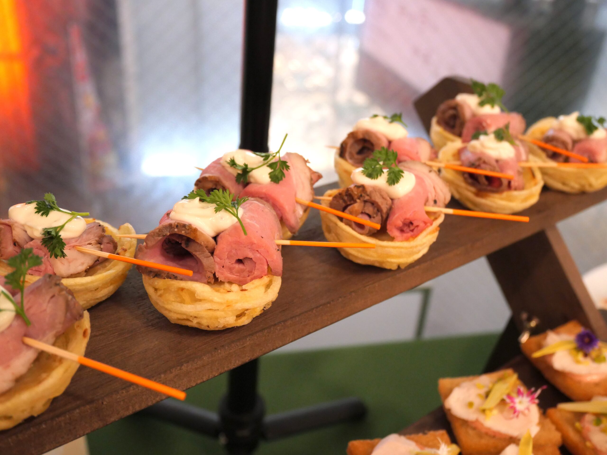 | メニュー | 合鴨パストラミ、白葱のピンチョス ※サンプルメニューでございます。ご予算・仕入状況によっては内容が異なります。 |
