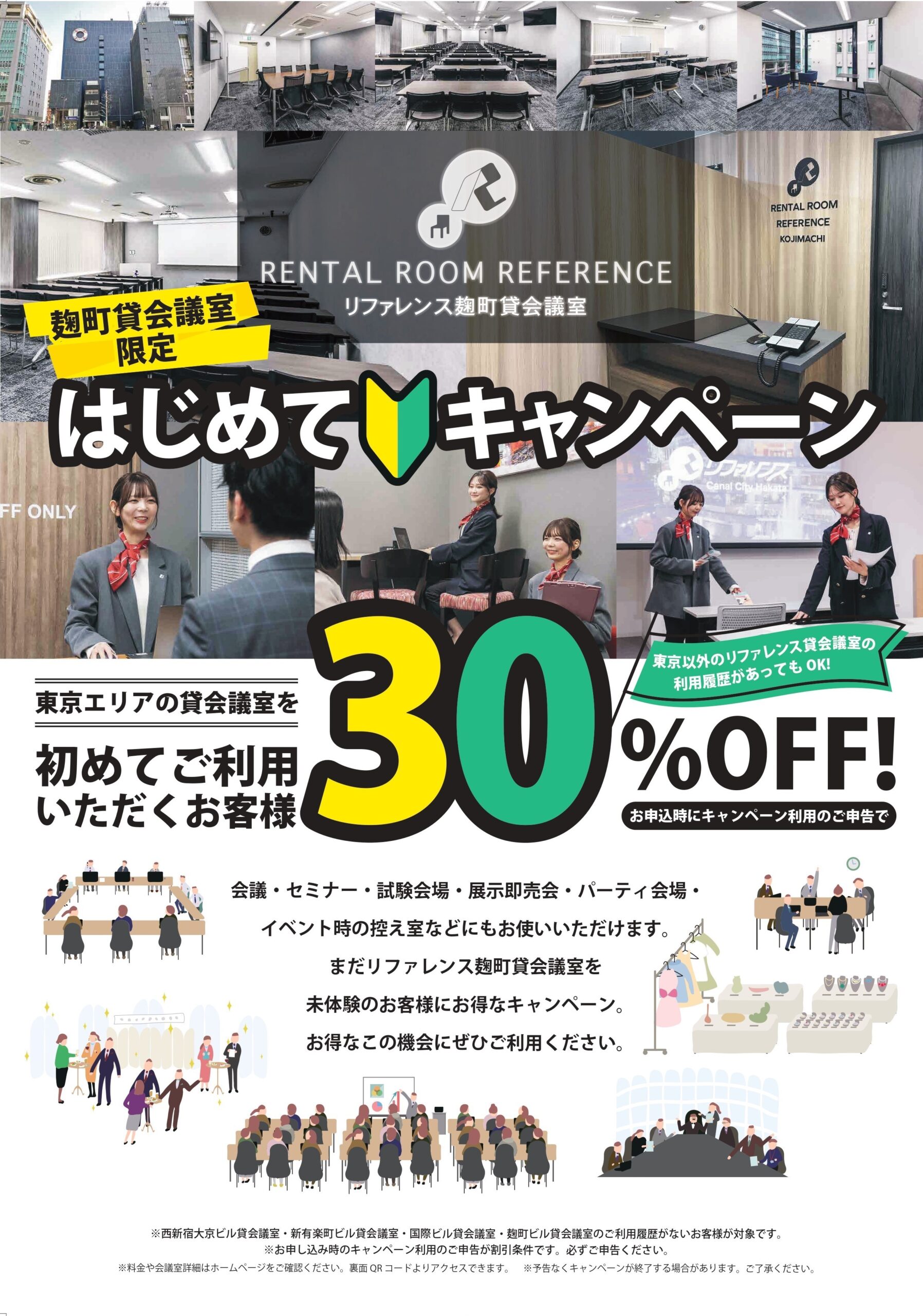 リファレンス麹町貸会議室を未体験のお客様にお得なキャンペーンとなっておりますので、この機会にぜひご利用ください。