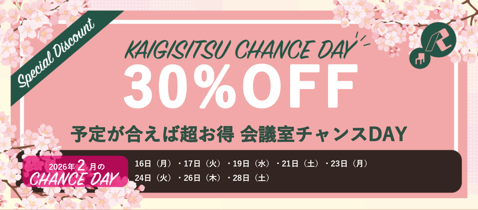 下記ご利用日限定で、貸会議室のご利用料金が