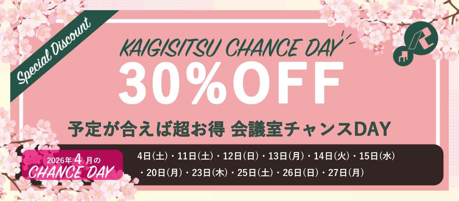 下記ご利用日限定で、貸会議室のご利用料金が