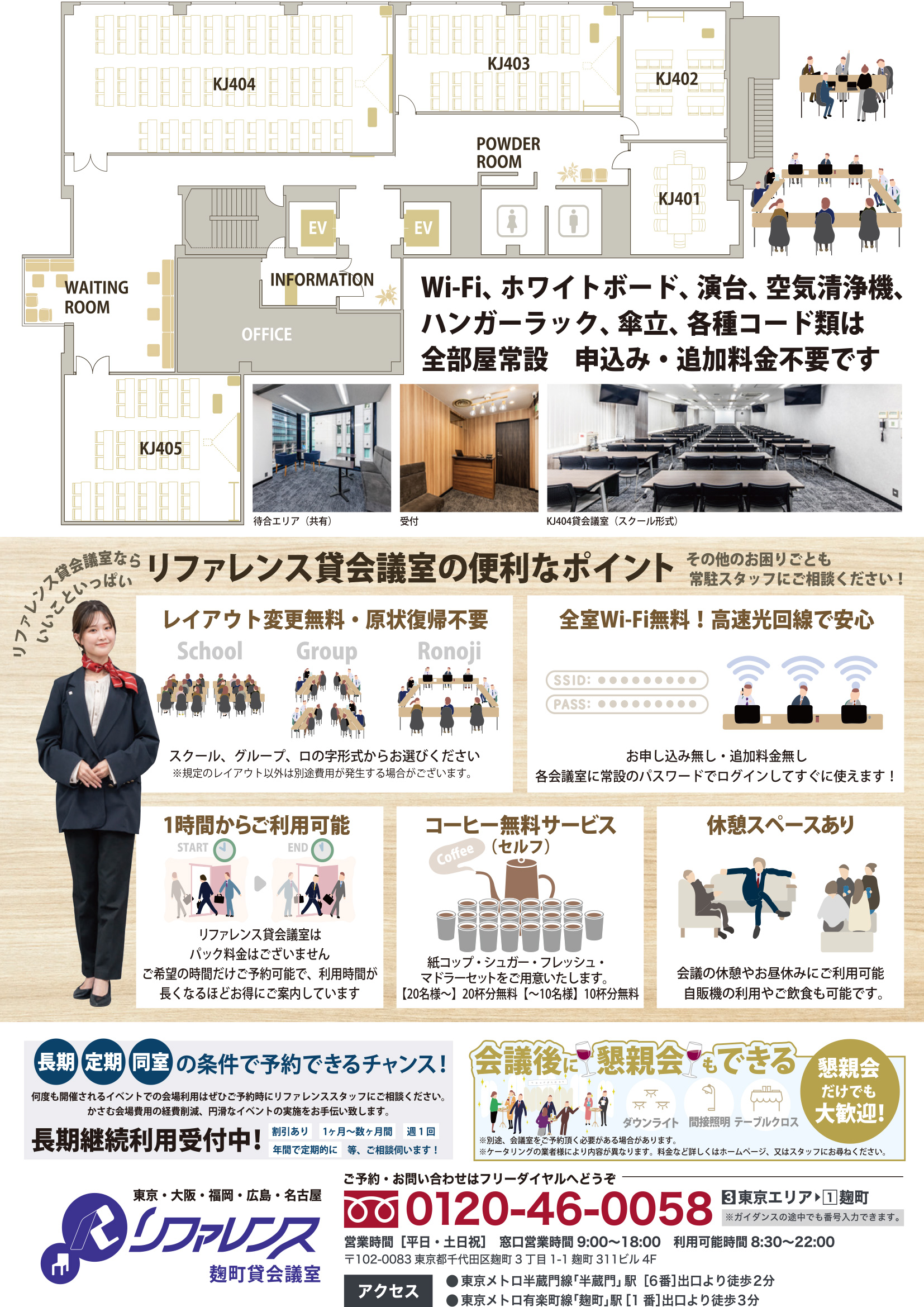 リファレンス麹町貸会議室では、2026年1月24日(土)受付分より