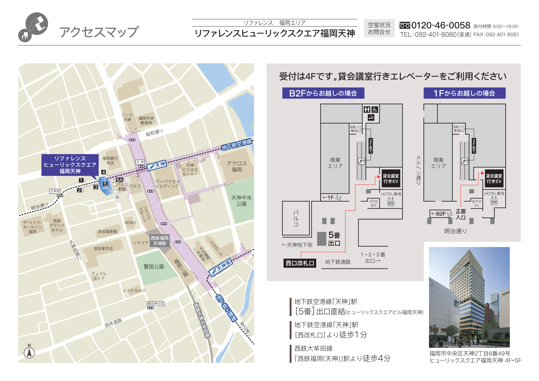 福岡県福岡市中央区天神2丁目8-49ヒューリックスクエア福岡天神 4F(受付)・5F
