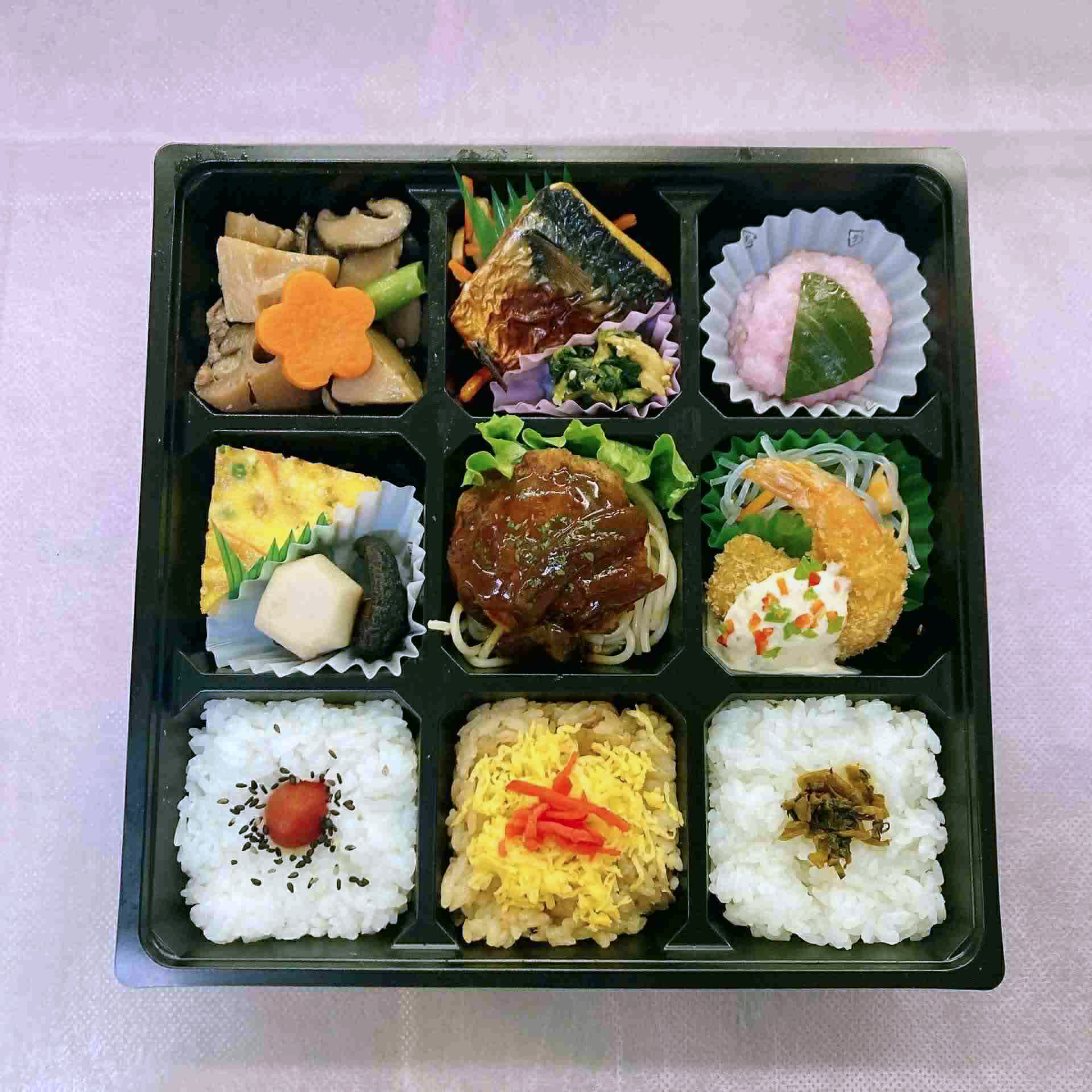 最低注文個数 5,000円(税込5,400円)以上。お弁当1種類につき3個以上。