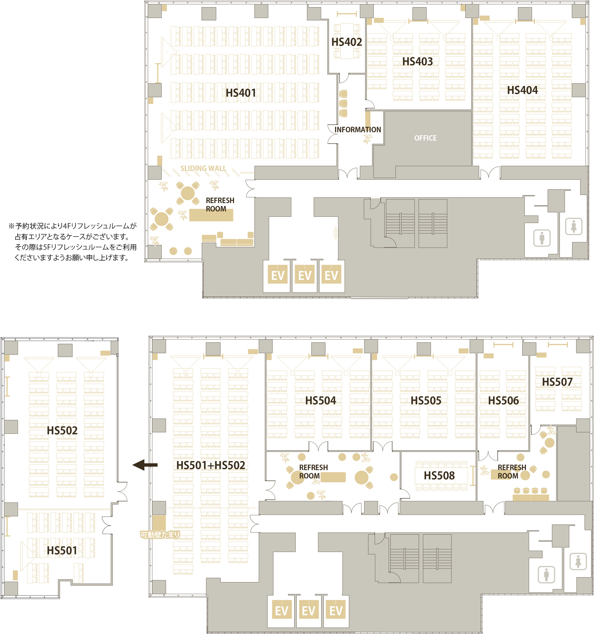 5Fのリフレッシュルームは2箇所。 HS506・HS507前の空間は会議前の待ち合わせにぴったりです。